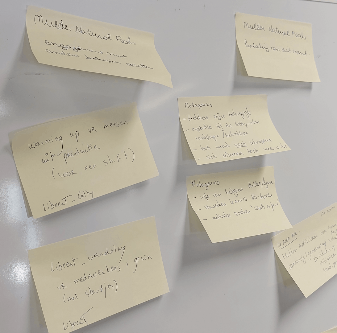 Dat de wandeling voor een hoofd vol nieuwe ideeën zorgde, werd al snel duidelijk door de volgeschreven post-it papiertjes. De deelnemers kregen namelijk nog de opdracht om hun nieuwe inzichten neer te pennen. Het resultaat? Een muur vol inspiratiebriefjes over sport en beweging!